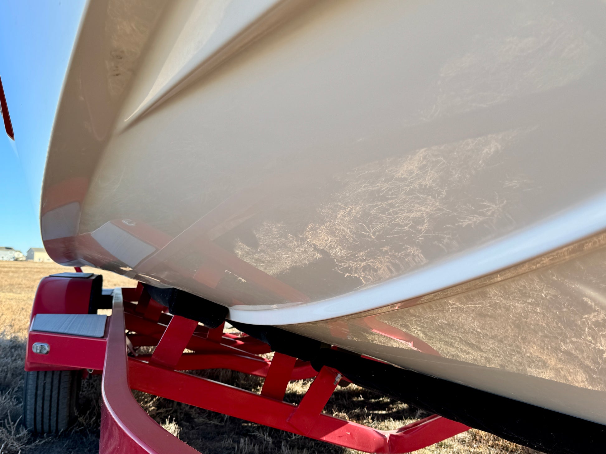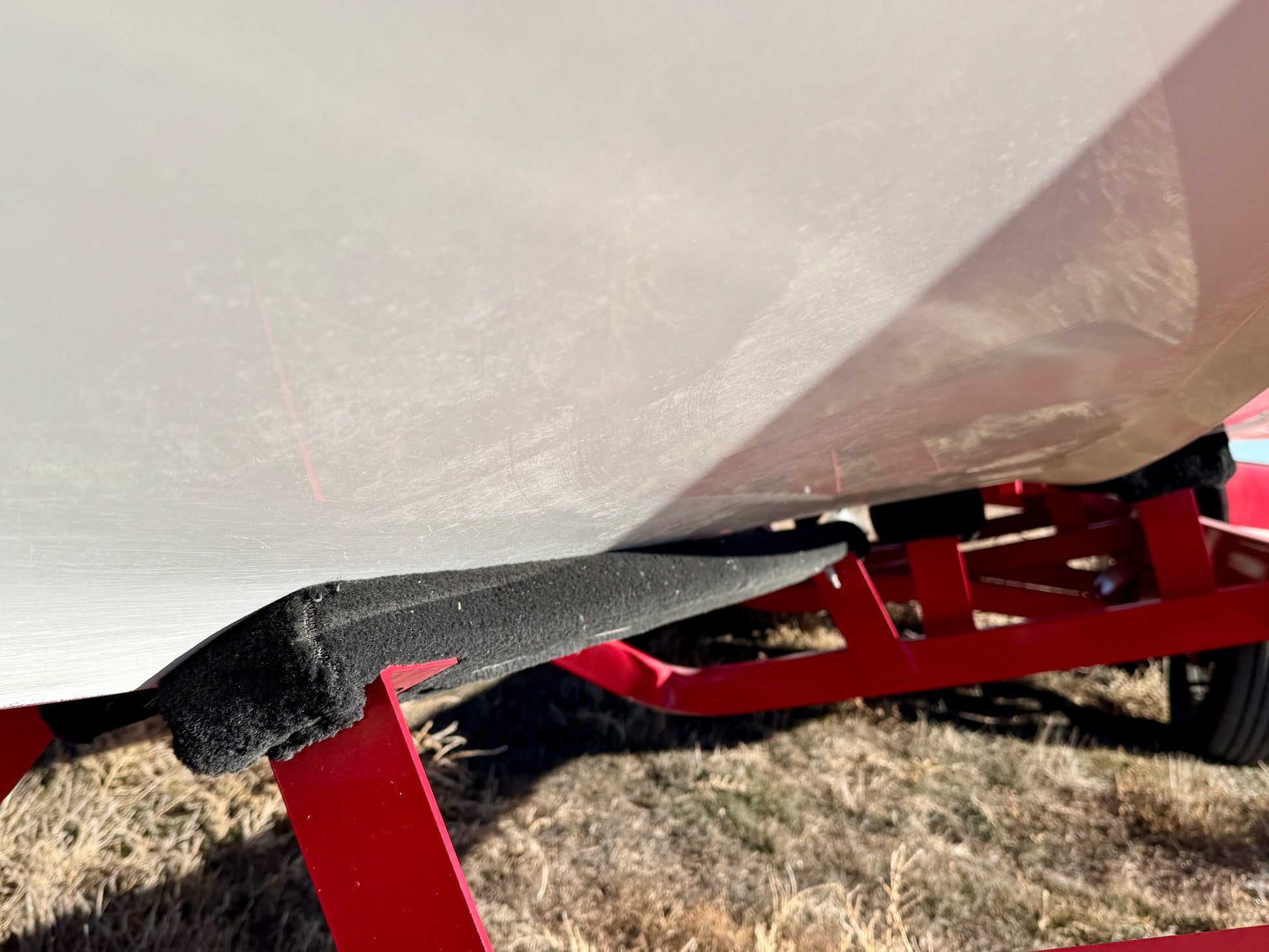 Flaws: tent pole ring imprinted in the bow cushion (needs rewrap), maybe 3 stress cracks near the rub rail (hard to see)