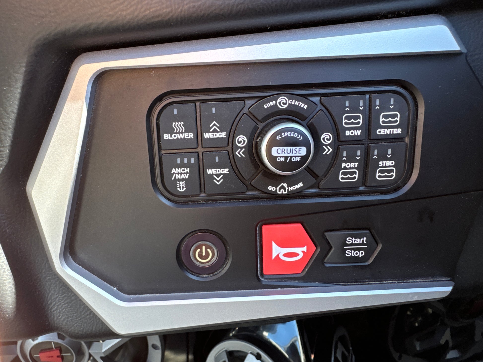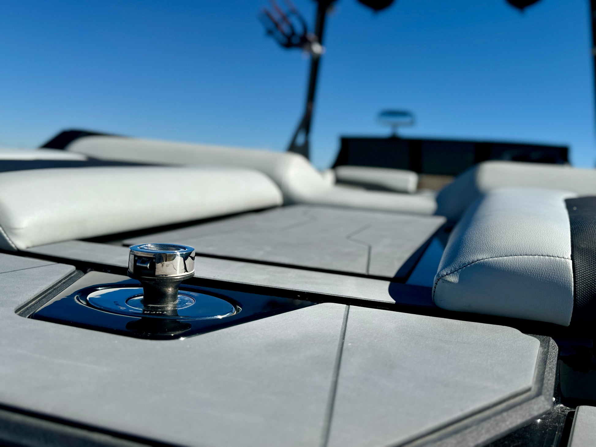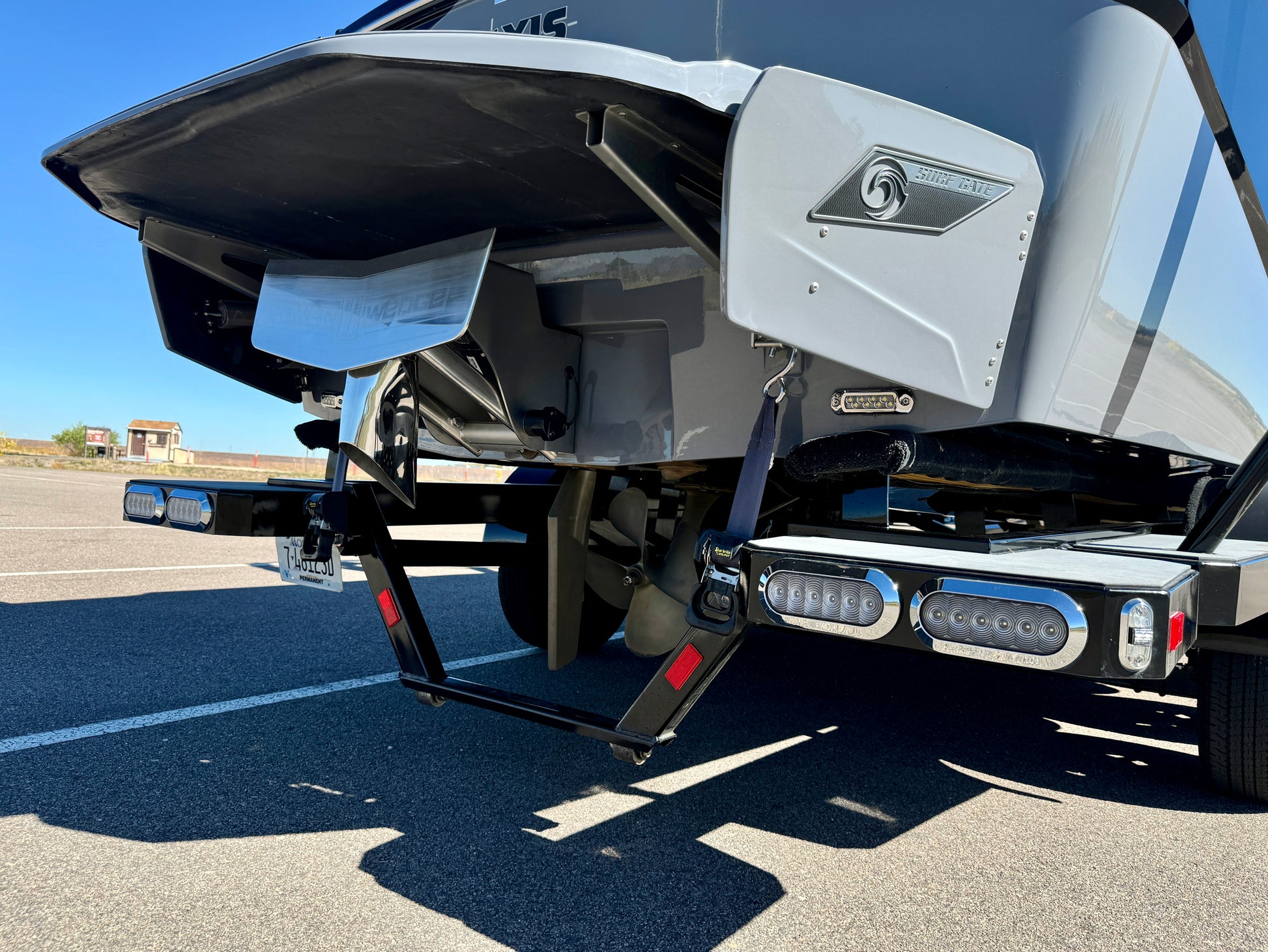 Surf System: SurfGate w/instant wave transfers, this style of wake-making is called "delayed convergence". In the rear of the boat, there is a drop-down wedge that will help pull the rear end of the boat down and imitate ballast. This is a Malibu specific wave creation feature. The boat also has a "zero-off GPS" that will hold the speed in .1 MPH increments
