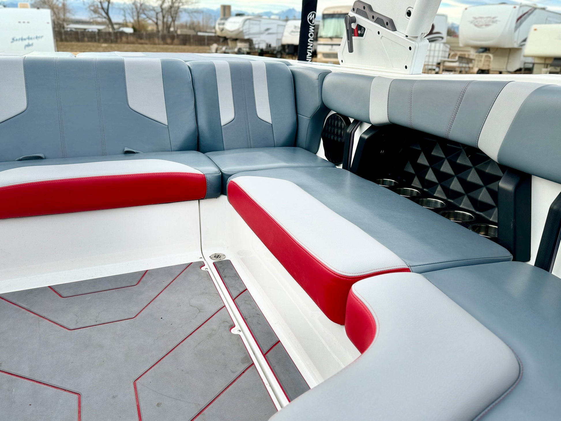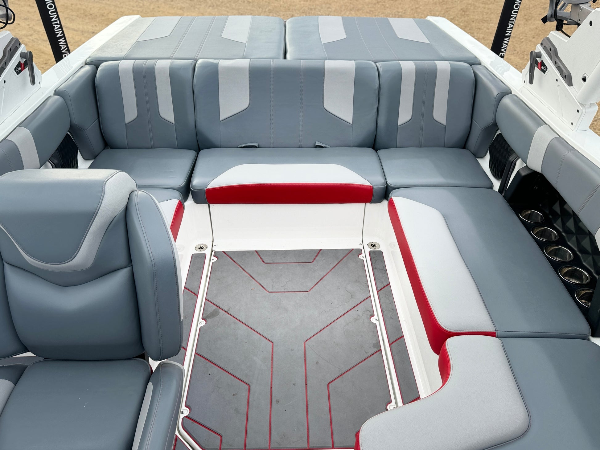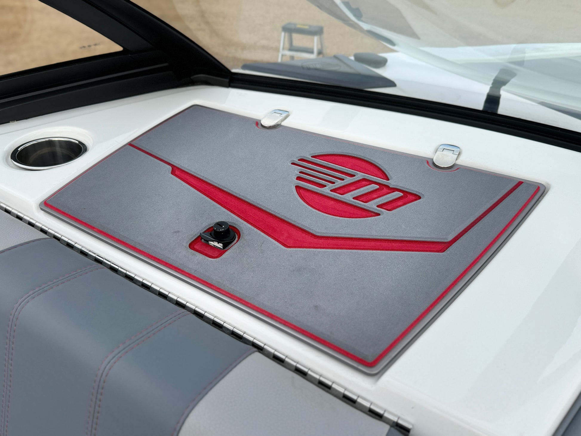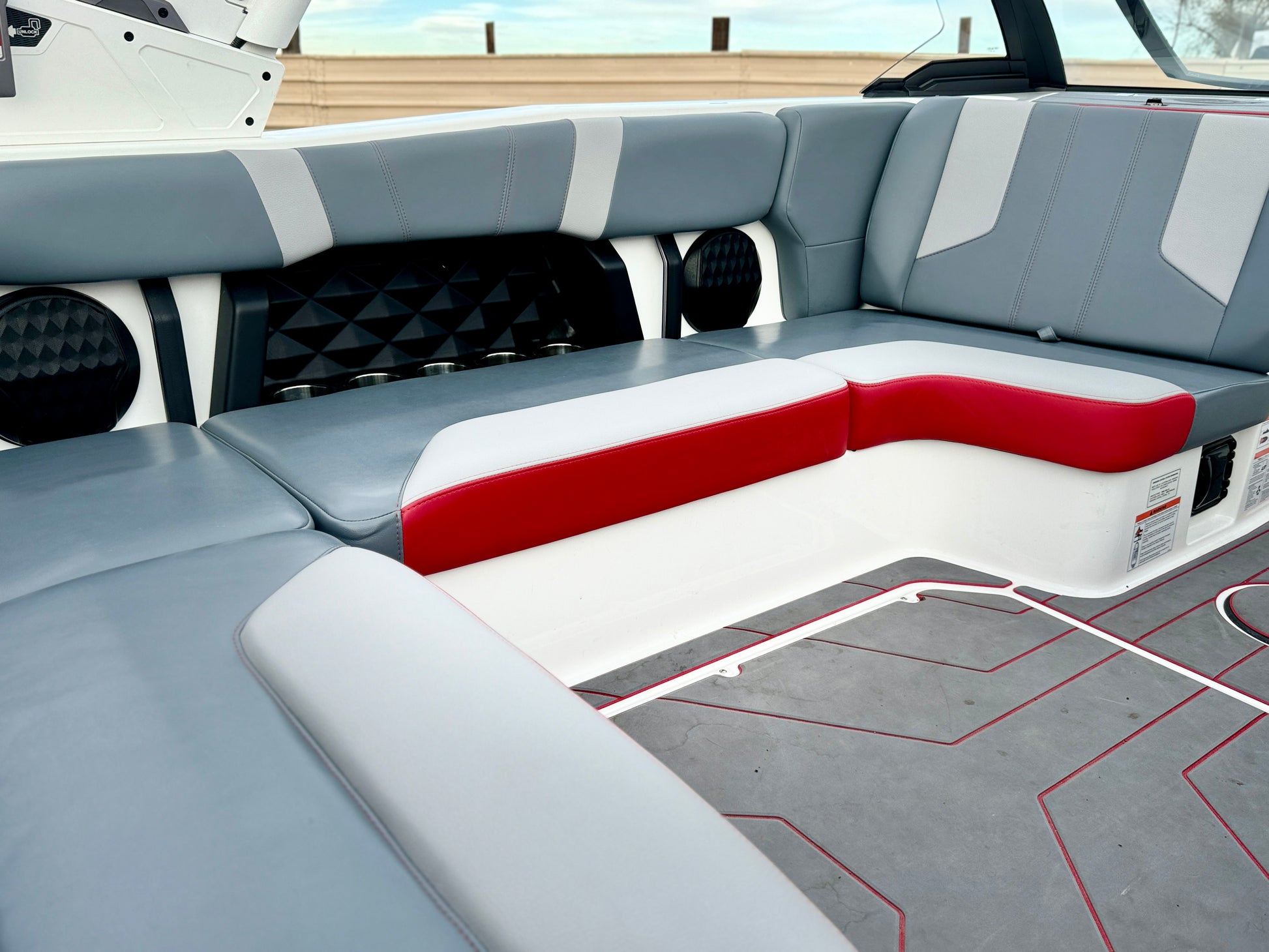 Surf System: SurfGate w/instant wave transfers, this style of wake-making is called "delayed convergence". In the rear of the boat, there is a drop-down wedge that will help pull the rear end of the boat down and imitate ballast. This is a Malibu specific wave creation feature.