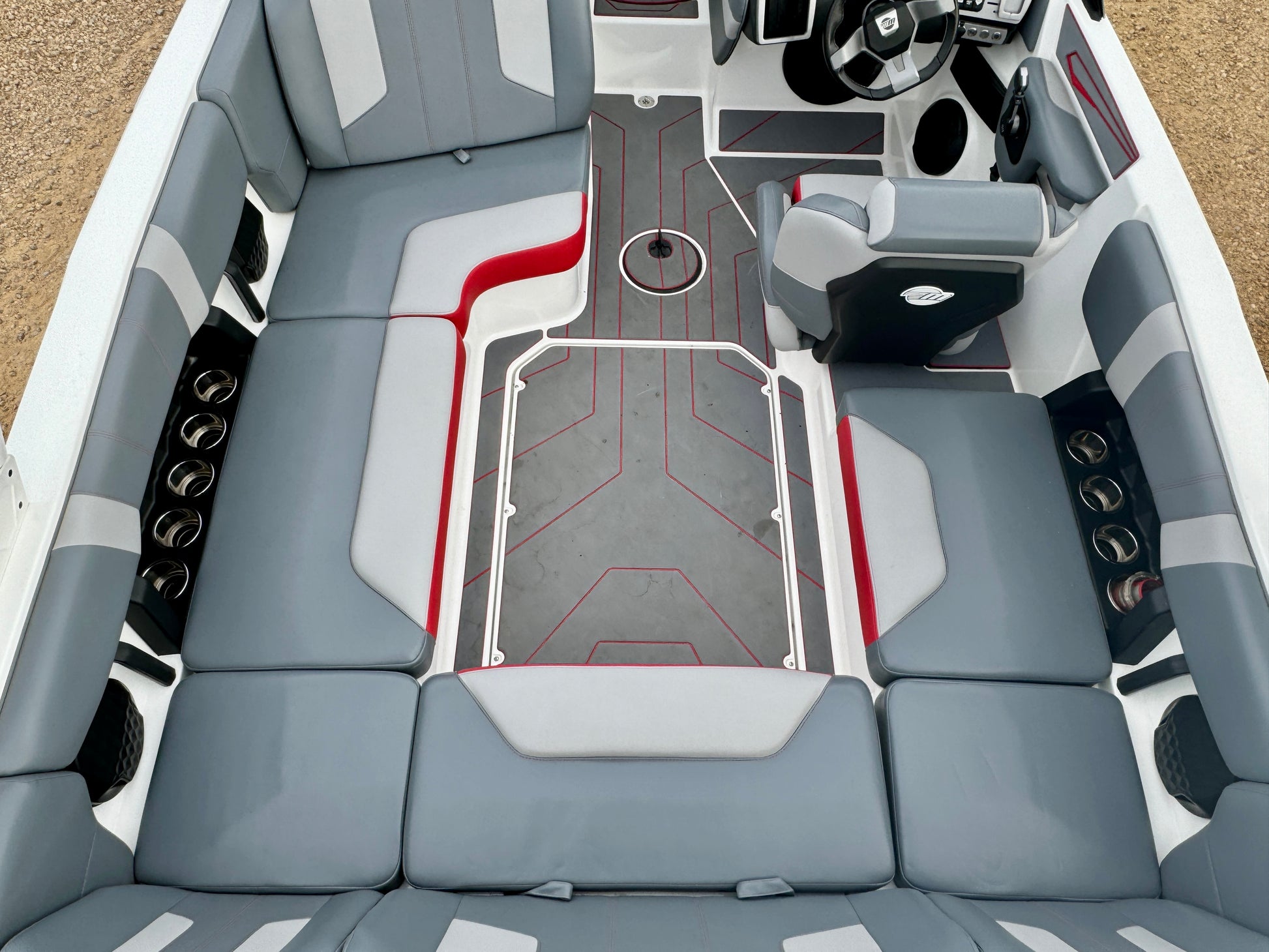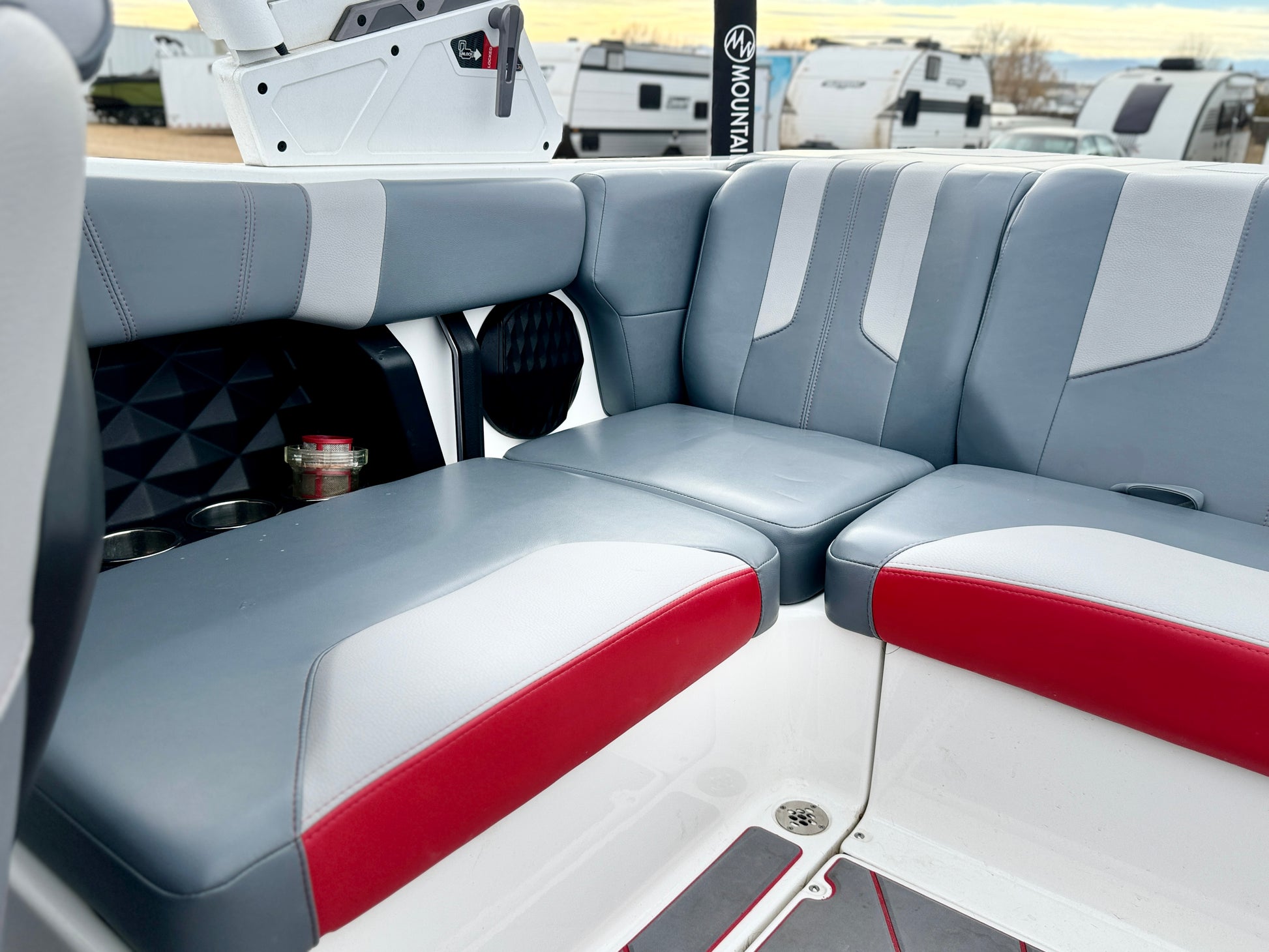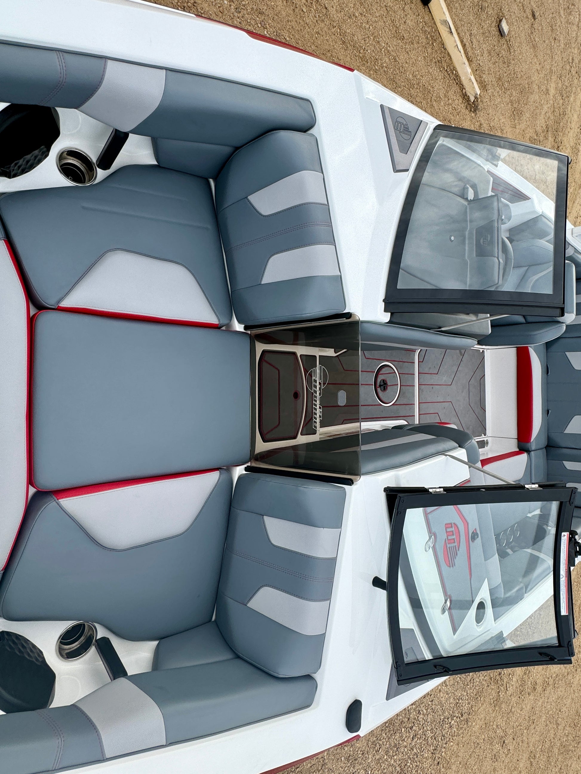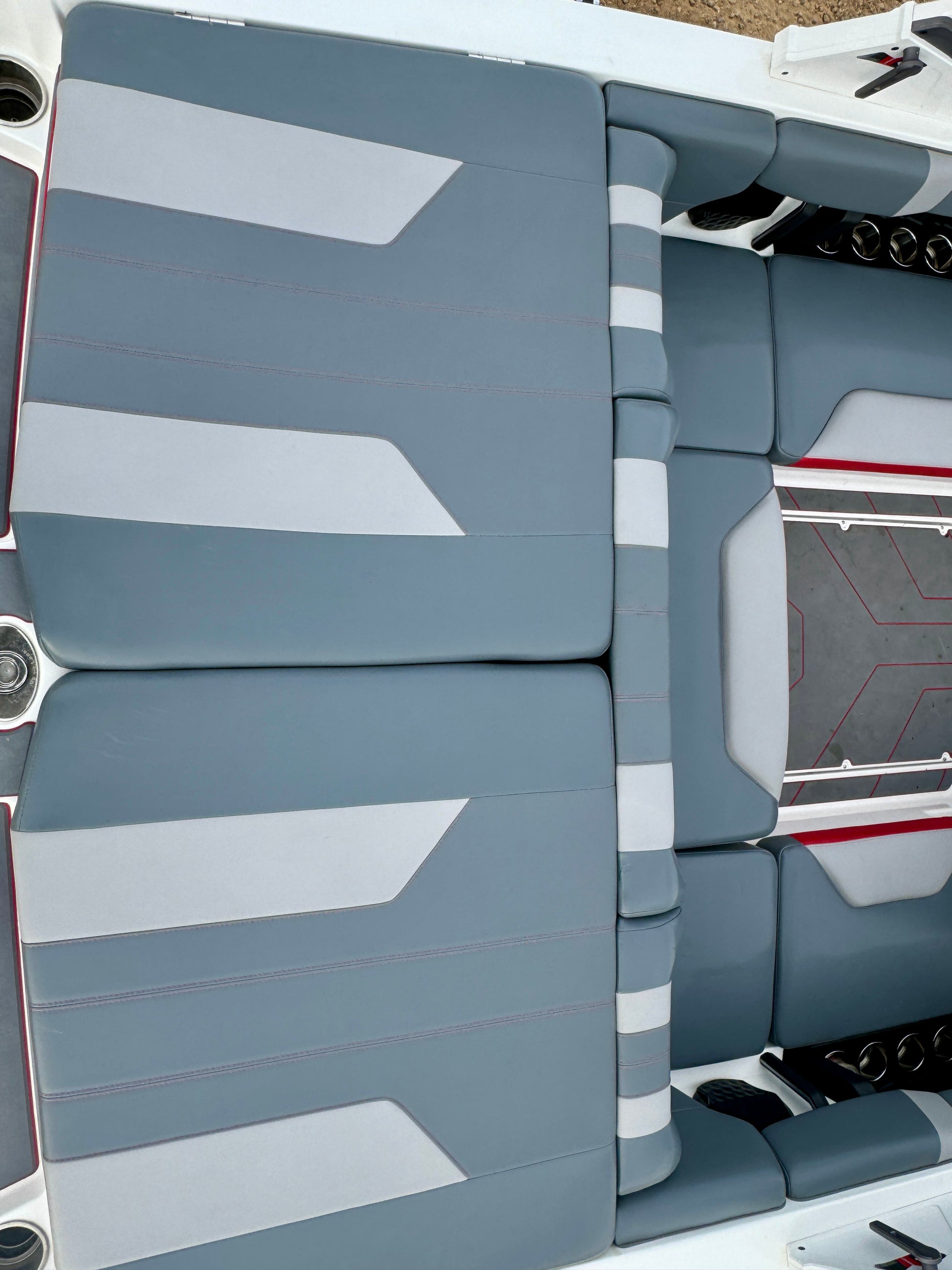 Surf System: SurfGate w/instant wave transfers, this style of wake-making is called "delayed convergence". In the rear of the boat, there is a drop-down wedge that will help pull the rear end of the boat down and imitate ballast. This is a Malibu specific wave creation feature.