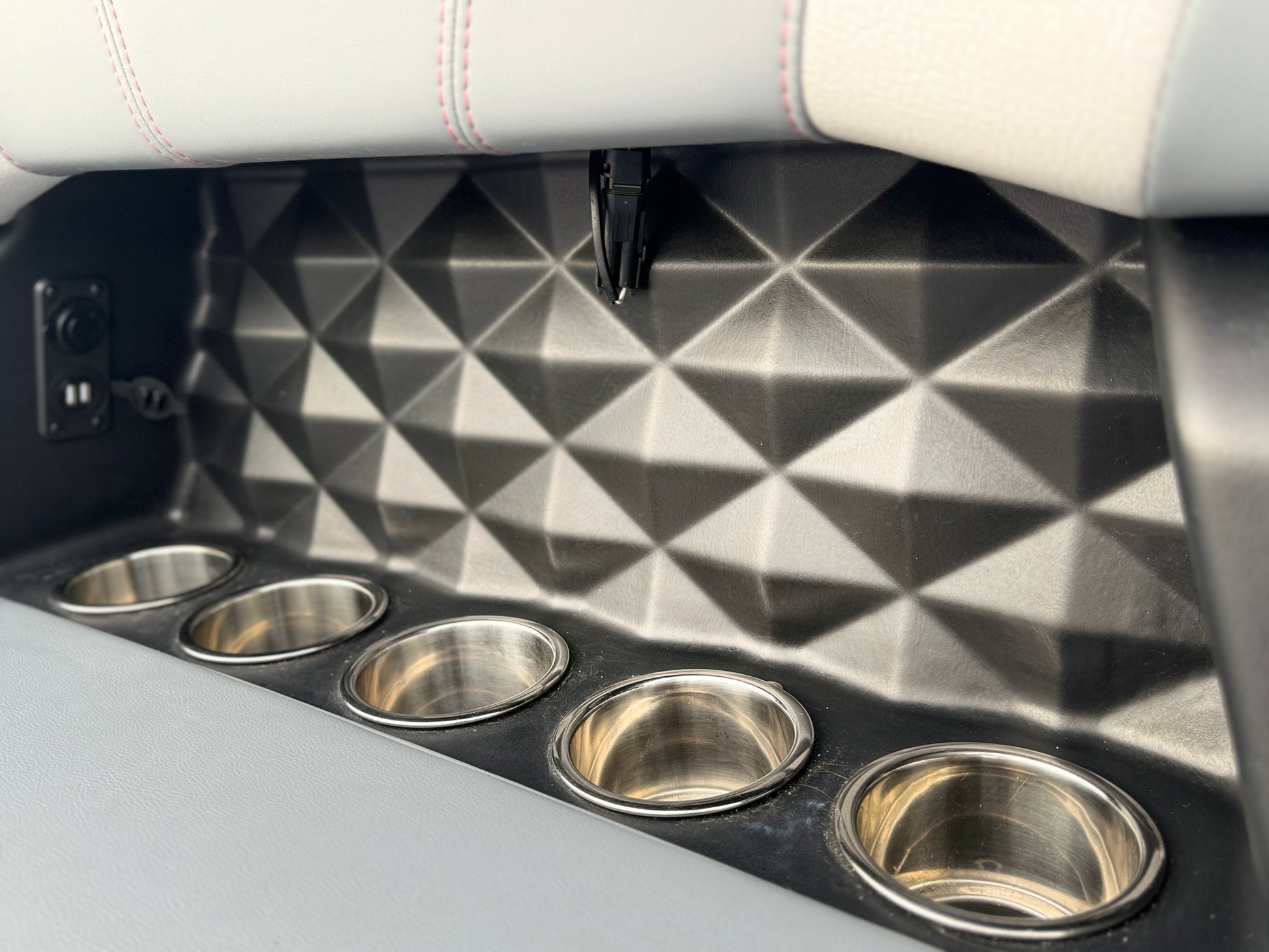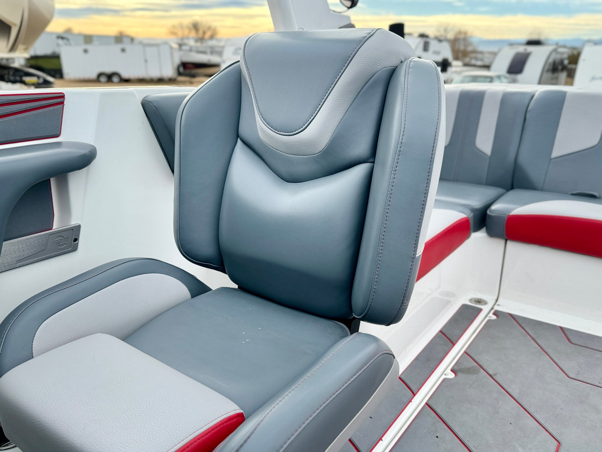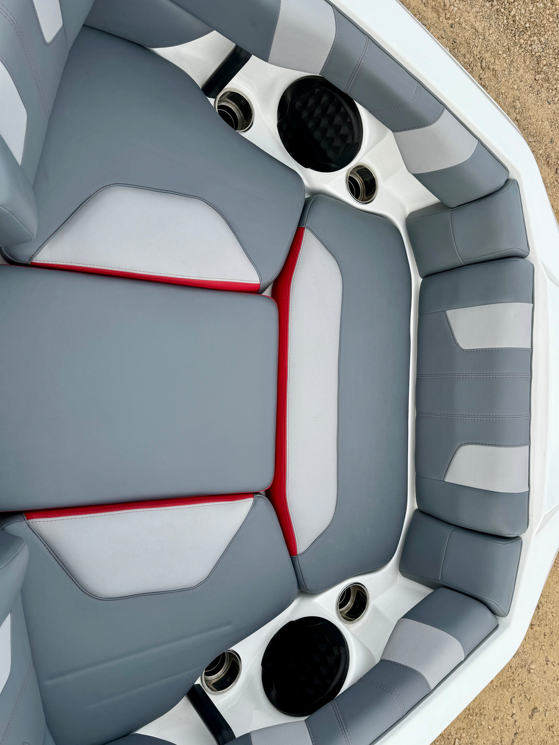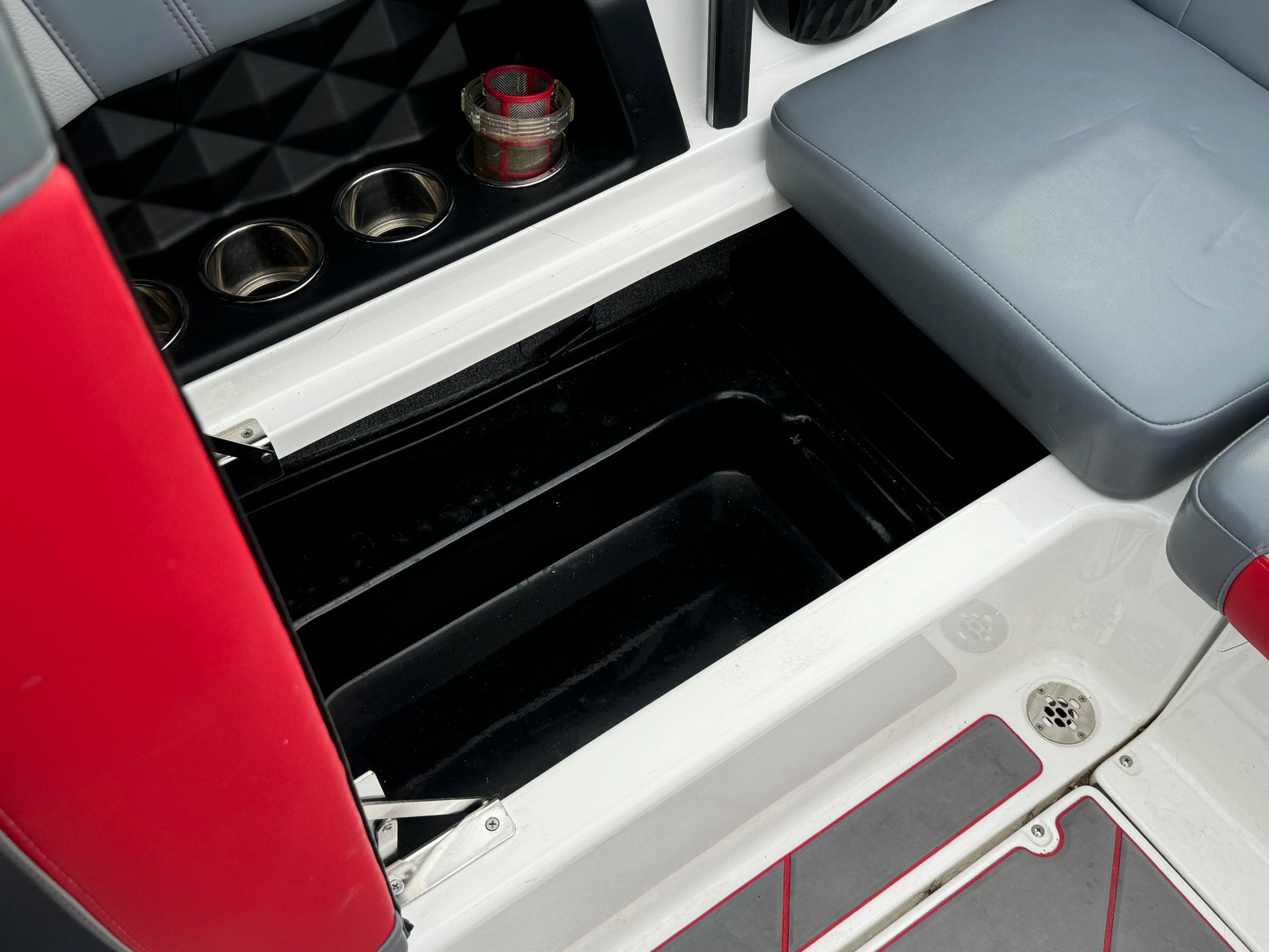 Surf System: SurfGate w/instant wave transfers, this style of wake-making is called "delayed convergence". In the rear of the boat, there is a drop-down wedge that will help pull the rear end of the boat down and imitate ballast. This is a Malibu specific wave creation feature.